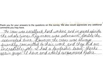 “The crew was excellent, hard workers, and in great spirits the whole time……………….I have and would recommend Reebie.”