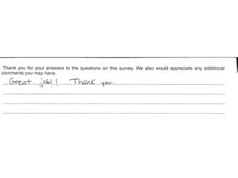 “Great job. Thank you.”