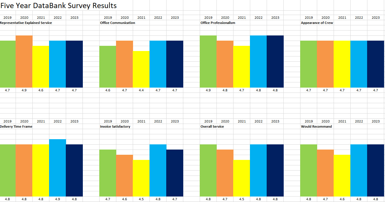 The DataBank surveys are starting to be returned. DataBank is once again rating an excellent in every category. In fact we are rating a perfect 5.0 in both “would recommend” and “overall performance.” You can’t get better than that. And as I have stated time and time again it is a team effort to get such high marks.