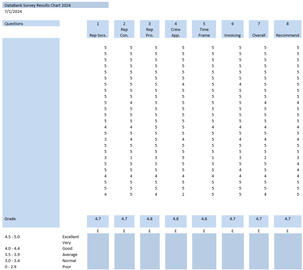 DataBank is currently having an excellent year. The revenue for the department is up 11% year to date and that is quite an accomplishment in this economic climate. Better still , our costs are down 3% and that just doesn’t happen. Only through hard work and by watching every dime can one cut costs and grow revenue at the same time. I am also happy to report that we are still tracking excellent in every category in our DataBank surveys and again that is only accomplished with a team effort.