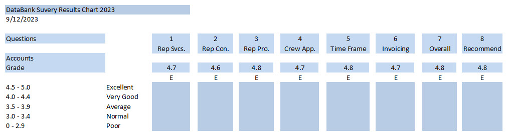 The DataBank department is getting an EXCELLENT rating in every category. Congratulations to everyone. This can only be done with a team effort.